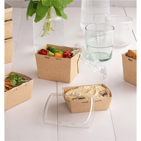 Close and present your preparations in a practical way with our transparent rPET lids for Deli2Go Kraft containers, designed to protect and showcase contents with total clarity. Ideal for cold foods in take away, delivery or display in showcases.